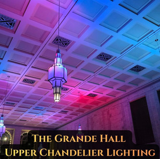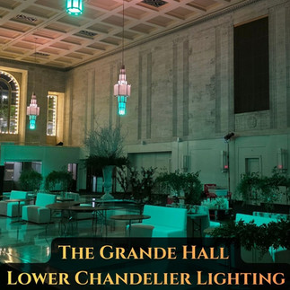 The Grande Hall and Legacy Event Group offer a wide variety of lighting options designed to completely transform the venue and create the perfect atmosphere for any event. From elegant uplighting and custom monograms to built-in smart lighting featured within the chandeliers, bar, and iconic vault, the space can be enhanced with vibrant colors, soft natural tones, or dynamic lighting effects tailored to your vision.